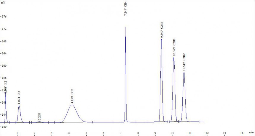 電力變壓器油中七組份分析譜圖: